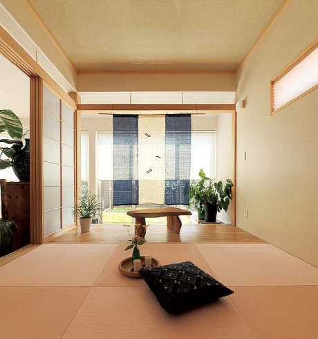 モダンな琉球畳の和室。普段は開放し、必要に応じて獨立させて使います