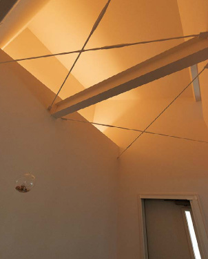 玄関ホールの天井にも梁をあらわし、ダイナミックに仕上げました