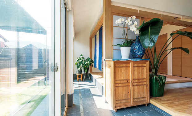 庭と室內をゆるやかにつなげる土間は、自在に使える便利なスペース