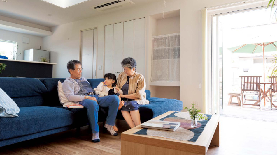 ゆったりとリビングのソファに腰かけ、孫娘との會話を楽しむNさまご夫妻