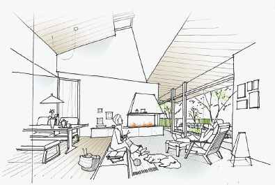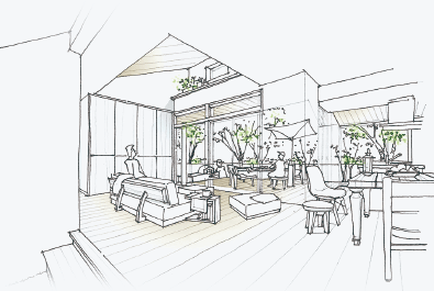 平屋暮らしの心地良さを存分に享受していただくために、ダイワハウスは「ひろがる」「つながる」「とりこむ」という3つのグランリビングの考え方をご提案します。リビングを中心として、より自由で開放的な住み心地をお楽しみいただけます。