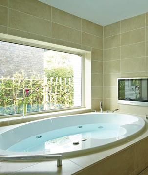 坪庭の眺めを楽しみながら一日の疲れを洗い流せるジャグジー