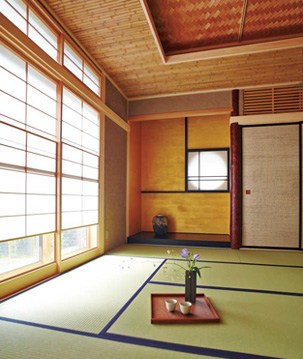 泊まりで訪れるゲストのために用意した、本格的な和室。あじろ天井や雪見障子が風格を感じさせます