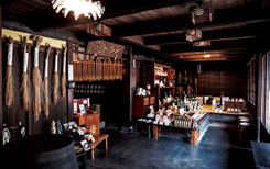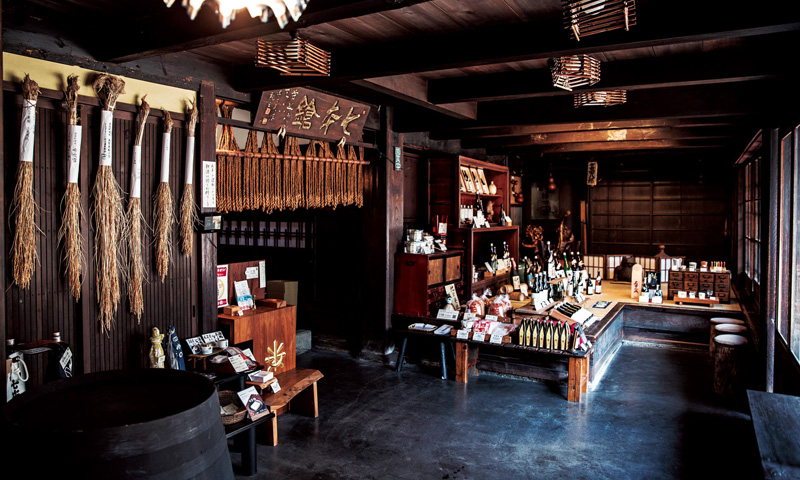 江戸時(shí)代に建てられた蔵の內(nèi)部。日本酒のほか、酒粕を使った石鹸やスイーツなども並ぶ