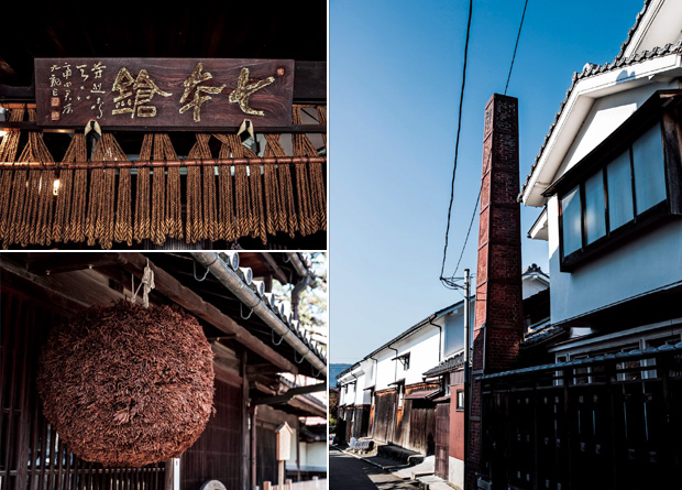 左下:新酒ができると軒先に吊るされる杉玉。緑から茶色へ変化していくことで酒の熟成具合を知らせるとも言われる