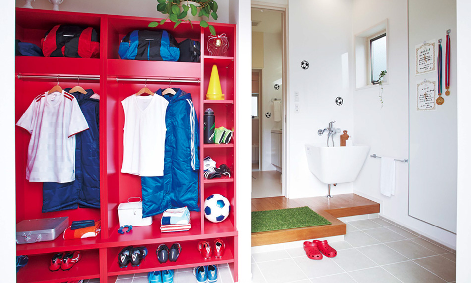 子どもがスポーツに打ち込んでいる、キャンプや釣りなどのアウトドアが趣味???というご家族は多いと思います。毎日をアクティブに楽しむ一方で、「用具の置き場がない」「泥で汚れた衣類を室內に持ち込みたくない」「洗い物が多くて大変」といったお悩みもお持ちなのではないでしょうか。