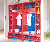 扉がなく収納しやすい、クラブハウスをイメージしたデザインのロッカー。自慢のシューズなどをディスプレイできます。