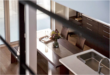 妻の尚美さんいわく、「共働きなので家事を手早くこなしたくて、動線にこだわりました」。買い物から帰ると玄関収納や手洗いスペースを通ってキッチンへ向かうことができ、効率良く家事を済ませられます。キッチンから1階全體を見渡せるので、家事の最中、子どもを遊ばせておいても安心です。