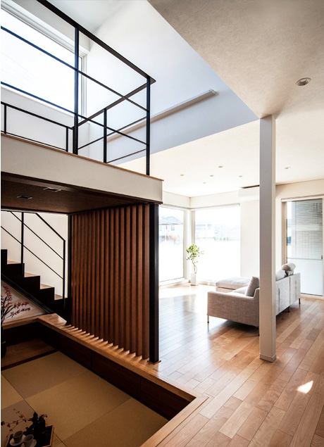 「平面的ではなく、空間を立體的にデザインした家にしたかったんです」と夫の貴弘さん。吹き抜けやスキップフロア、ロースタイルのタタミスペースなど、天井や床の高さに変化をつけたオリジナリティあふれる住まいになりました。