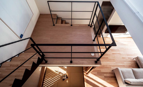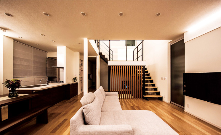 スキップフロアを介して1階と2階がつながった立體的な空間。さりげない間接照明がやさしい明るさで包みます