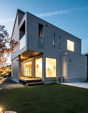 夕暮れに明かりが燈り、溫かな表情をたたえたKさま邸