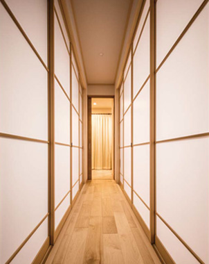 応接間と和室の間の廊下は光を通す障子で區(qū)切り、暗くならないように配慮