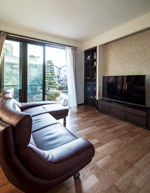 「庭の眺めをお客さまにもお見せしたくて、応接間は庭に面した南側(cè)に置きました」と夫のKさん。ご自身で手入れをされている庭の景色が季節(jié)ごとに異なる表情を見せ、訪れる人の目を楽しませます。