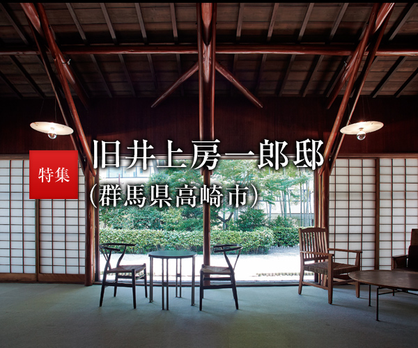 群馬県の中核市として栄える高崎市。商業ビルやマンションが建ち並ぶ駅前の一角に、昭和から時の流れが止まったかのような邸宅が佇んでいます。使い込まれ、時のもたらす変化を受け入れつつも、そのデザインの斬新さは色あせない近代建築。この屋敷の元の主は、井上房一郎(1898~1993)。高崎市に生まれ育ち、高崎市の文化蕓術の発展に貢獻した実業家です。
