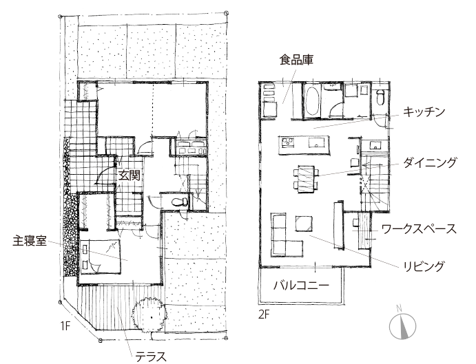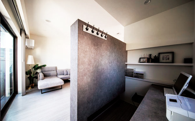 真衣さんのジュエリーデザインや、翔伍さんのパソコン作業(yè)のために設けたワークスペース。リビングの一角にあるので、家事の合間を有効活用できます