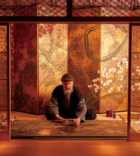 艶やかに輝く屏風(fēng)畫を背に、碧眼の畫家は筆を執(zhí)ります。思わず息をのむ気迫で植物の力強(qiáng)さと繊細(xì)さを描き出すのは、アメリカ人畫家のアラン?ウェストさん。魂を込め、真剣な表情で絵と向き合います。