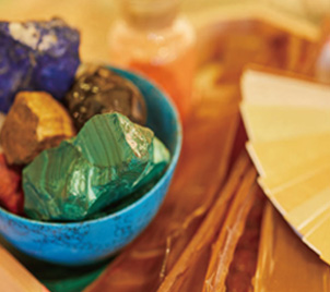 日本畫に用いる巖絵具や鹿の膠、金箔などの畫材