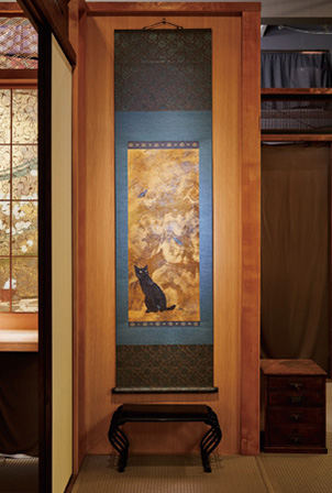 多種多様な作品を生み出してきたギャラリー兼アトリエ。玄関正面にある作業(yè)場でアランさんが絵を描く姿を気軽に見られるようになっているのには理由があります。「毎日この前を通る人、たまたま通りかかった人に少しずつ絵が完成していく様子を見せて、少しでも日本畫に興味を持ってもらいたいのです」。日本畫の畫材屋さんや掛け軸で使う織物の織元が時(shí)代の流れとともに廃業(yè)に追い込まれているのに心を痛め、もっと業(yè)界を盛り上げるためにアピールしたいという思いからだそうです。