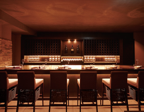 都會の真ん中に、喧噪(けんそう)から逃れて一息つける大人たちの隠れ家があります。ケンゾー エステイト ワイナリー 銀座店に足を踏み入れると、そこに現れるのは気軽にテイスティングできるカウンター。正面の壁には、飾られたワインボトルが照明に照らされて優美に輝き、上質な店內を演出しています。