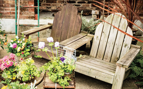 庭先でちょっと腰掛けて花を眺められるベンチ