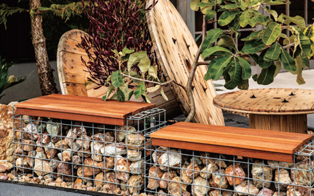 ガビオンは川の護(hù)岸工事などに使われていましたが、獨(dú)特な裝飾からガーデンのトレンドになっています