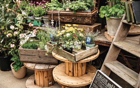 廃材のケーブルドラムを花臺(tái)にして、季節(jié)の花を飾るアイデア