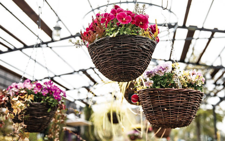 スペースが限られる場(chǎng)合は、ハンギングバスケットを吊るして