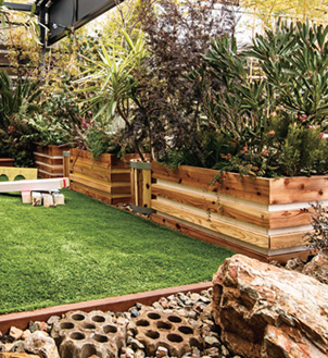 子どもが転んでも怪我しにくく、お手入れが簡(jiǎn)単な人工芝。爽やかな緑が庭にみずみずしさを與えます。コンテナに草木の鉢を入れ込むだけで、ガーデンになります