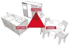 トーヨーキッチンスタイルが考案した、LDK空間全體「空間ゼロ動線」をかなえるレイアウト。キッチン(Kitchen)?ダイニング(Dining)?アイランド収納(Storage)の3つを効率よくレイアウトすることで作業動線を限りなくゼロに近づけます。
