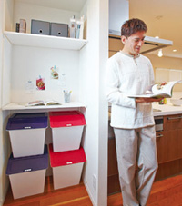 LDまわりには雑誌、美容グッズ、勉強道具など、家族がそれぞれ使うものが散らかりがち。各自がボックスに収納すれば、きちんと片づきます。
