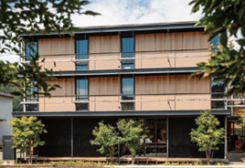 工房のそばに建てられた福井本社。シンプルモダンの社屋ではデザイナーや商品開発などのスタッフが業務にあたっています