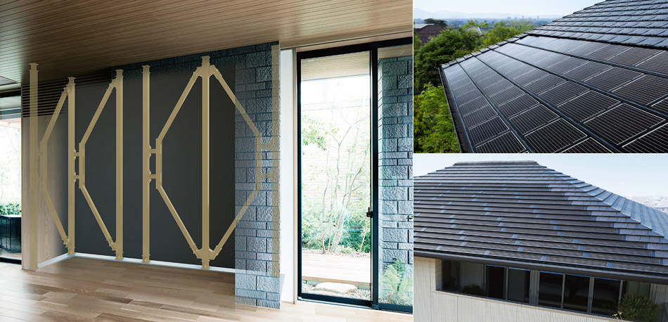 停電?地震?臺風などのさまざまなリスクに備え、業界初※1のシステムや獨自技術を取り入れました。停電時には「全天候型3電池連攜システム」、地震時には「エネルギー吸収型耐力壁KyureK(キュレック)」が家族の安心を守ります。「高耐久軽量屋根材ROOGA(ルーガ)※2」と「防災防犯ガラス」は、飛來物から家をガード。それぞれのポイントをご紹介します。